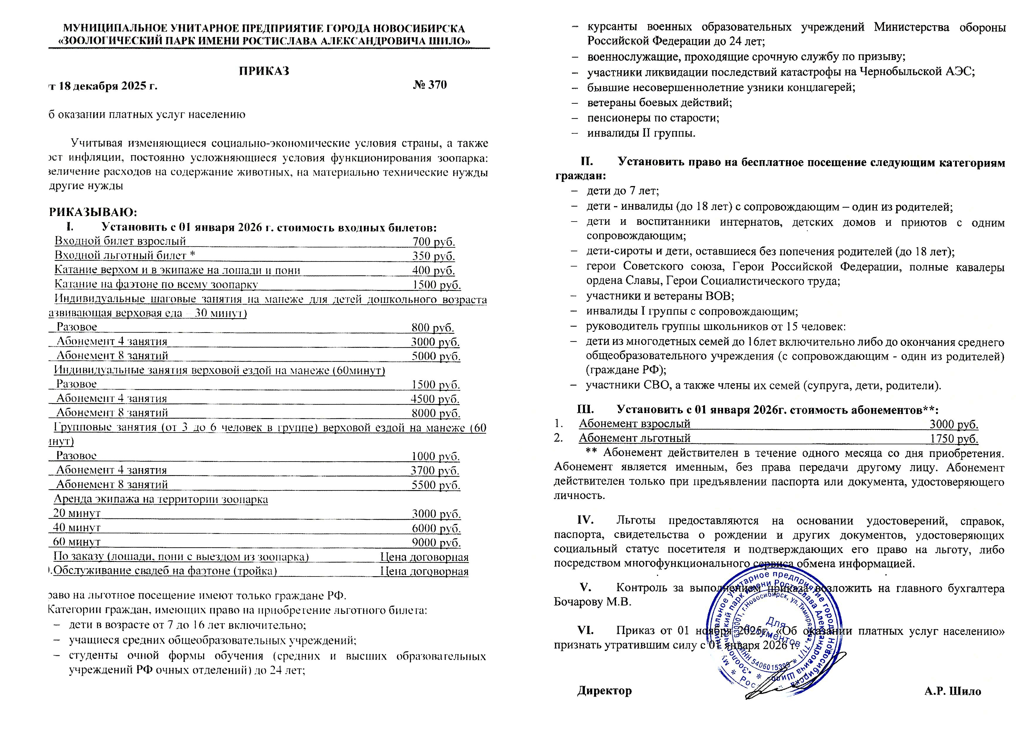 - Приказ о платных услугах